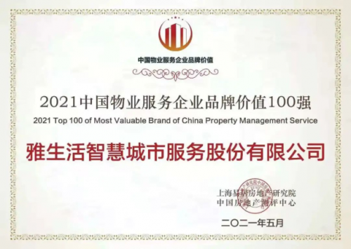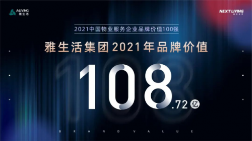 雅生活集團作為中國物業(yè)管理行業(yè)百強TOP4,榮獲“2021中國物業(yè)服務(wù)企業(yè)品牌價值100強”,憑借優(yōu)異穩(wěn)定的市場表現(xiàn),實施“智慧城市服務(wù)商戰(zhàn)略”使雅生活品牌影響力與發(fā)展?jié)摿ψ咴谛袠I(yè)前沿,品牌價值再創(chuàng)新高達到108.72億,品牌實力更上新臺階。