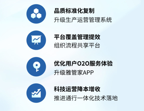 未來(lái),雅生活集團(tuán)將著力打造五大核心競(jìng)爭(zhēng)力,分別為服務(wù)產(chǎn)品力、市場(chǎng)拓展力、科技運(yùn)營(yíng)力、整合組局力以及高效組織力。集團(tuán)將始終堅(jiān)持品質(zhì)核心,持續(xù)提升服務(wù)標(biāo)準(zhǔn)化,不斷創(chuàng)新、迭代服務(wù)產(chǎn)品,打磨服務(wù)產(chǎn)品及口碑,梳理不同業(yè)態(tài)服務(wù)產(chǎn)品標(biāo)桿。